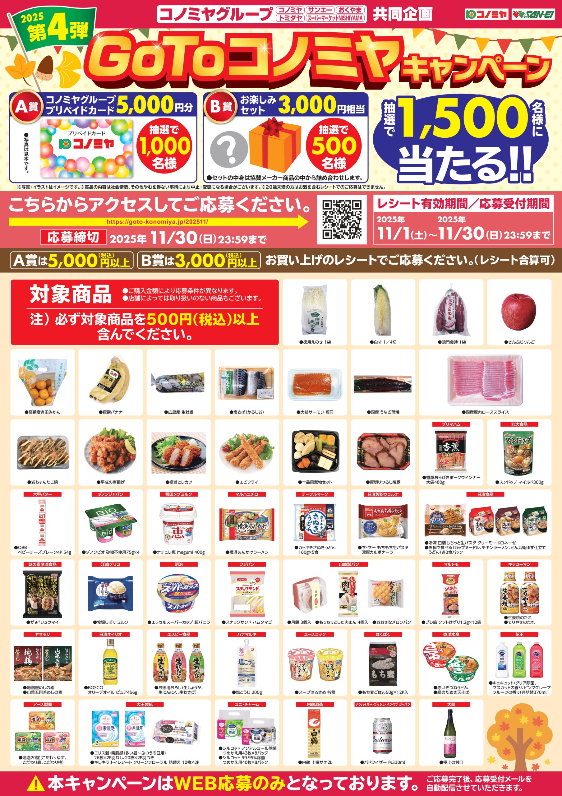令和7年11月1日~11月30日の期間中、コノミヤグループ全店におきまして、
