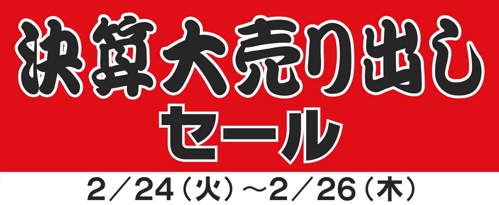 2/24(火)から2/26(木)の3日間、 決算大売り出しセールを開催いたします!